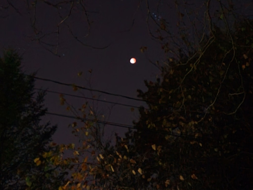 I could see the shadow that was being cast upon the moon. It was reddish/pinkish in color, at least to my human eye. When I went to take a picture, my camera automatically began suggesting I use “night mode,” which kept the shutter open on my camera for longer than I could hold still. I began getting frustrated with my camera, attempting to try various modes: with a flash, without a flash, zooming-in, zooming-out, selfie with the moon, video with the moon. And then I stopped myself. I could be missing a once-in-a-lifetime experience because I was too busy trying to capture it on film. (Did I just date myself by saying that?)